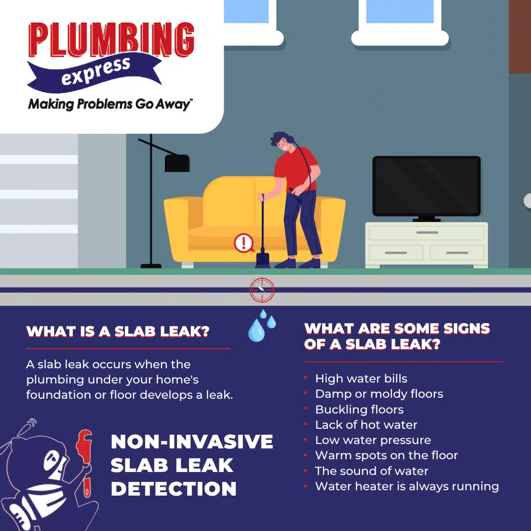 If left unaddressed, a slab leak can cause significant damage to floors and walls and even shifting or cracking of the foundation.